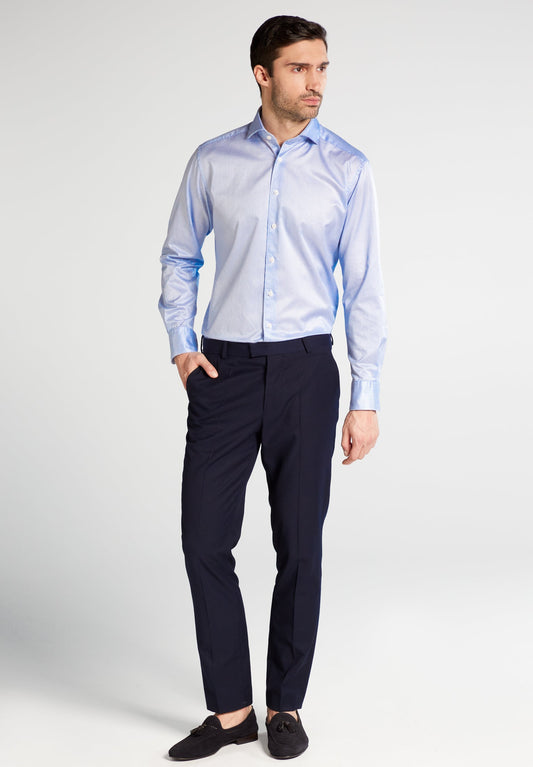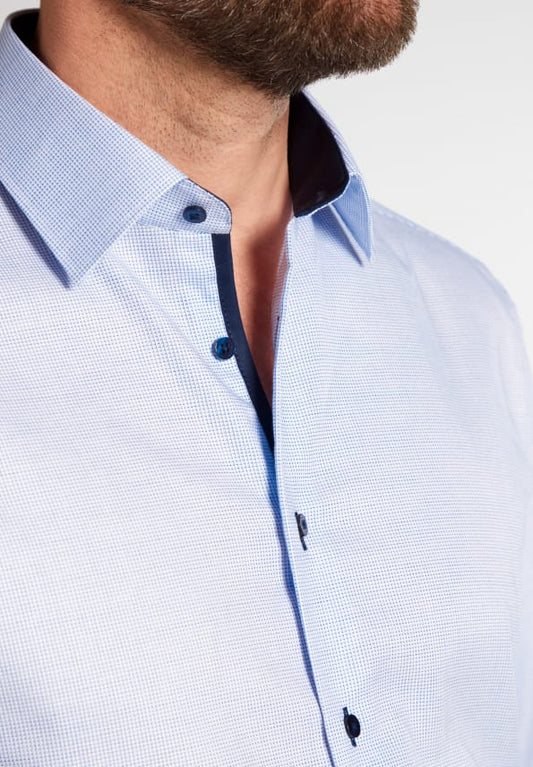 ETERNA LANGARM HEMD MODERN FIT STRUKTUR HELLBLAU MIT PATCHUNG