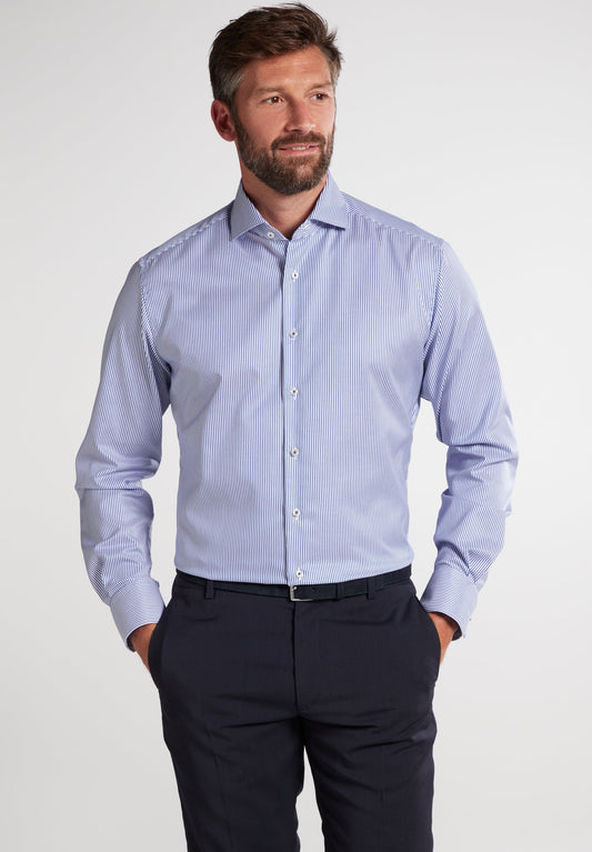 ETERNA LANGARM HEMD MODERN FIT STREIFEN TWILL BLAU/WEISS