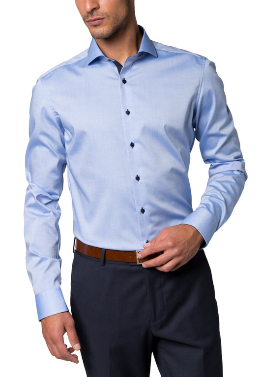 ETERNA LANGARM HEMD SLIM FIT FEIN OXFORD BLAU MIT PATCHUNG